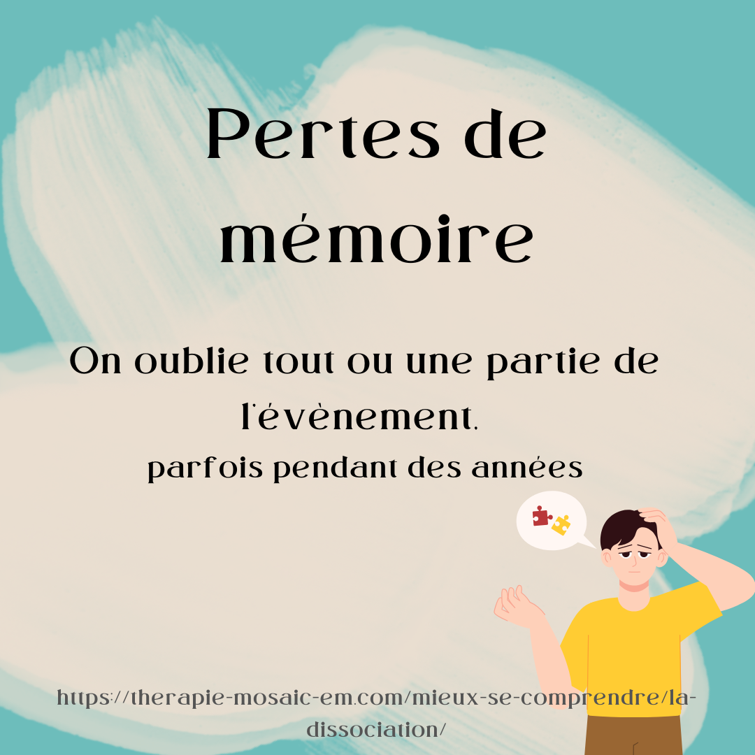 Il est possible également que la personne ait des trous de mémoire quant à l’évènement douloureux qui s’est passé :