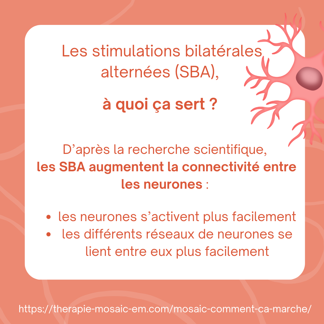Les stimulations bilatérales alternées (SBA) sont au cœur de l’efficacité de la thérapie MOSAIC®. Des études scientifiques ont démontré que ces stimulations: